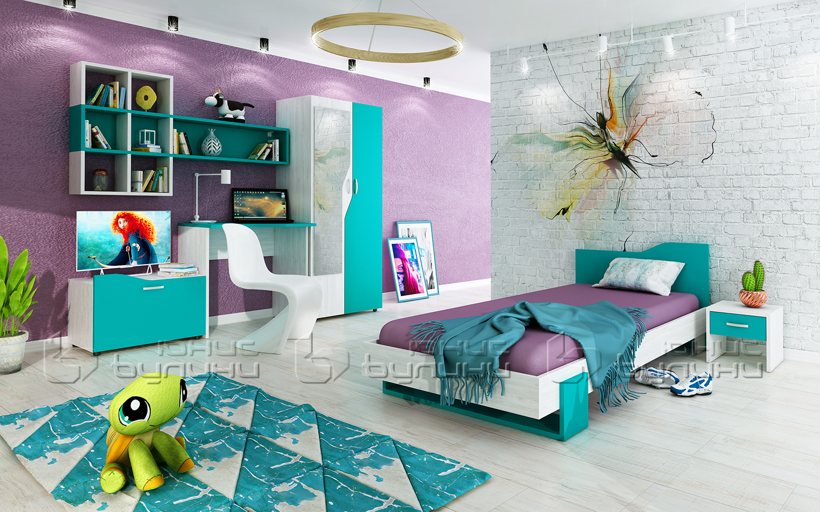 Детско обзавеждане Куин впечатлява със своята модерна концепция и тюркоазен цвят, който е сред любимите на малчуганите. Цветът е подбран специално, за да създава усещане за спокойствие и въображение, което го прави идеален за детска стая. Мебелите от тази серия не само изглеждат красиво, но също така допринасят за развитието на визуалните възприятия на детето от ранна възраст.