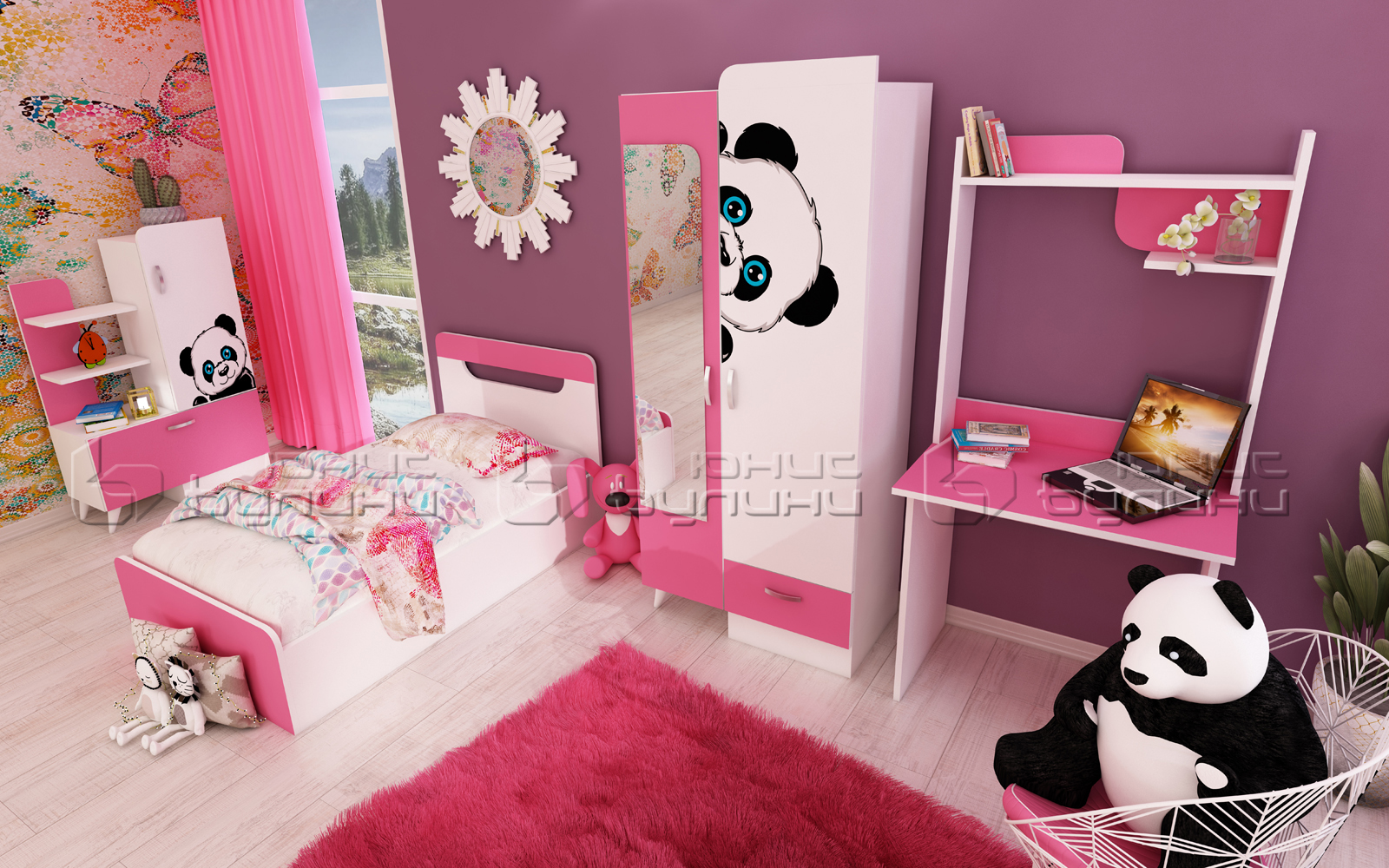 Детско обзавеждане Панда е проектирано с мисъл за максимална функционалност и удобство. Комплектът включва гардероб, легло, шкаф и бюро, което прави обзавеждането изключително практично за всяка детска стая. Всички елементи са създадени с оглед на нуждите на децата и родителите, предоставяйки достатъчно място за съхранение и организиране на вещите.