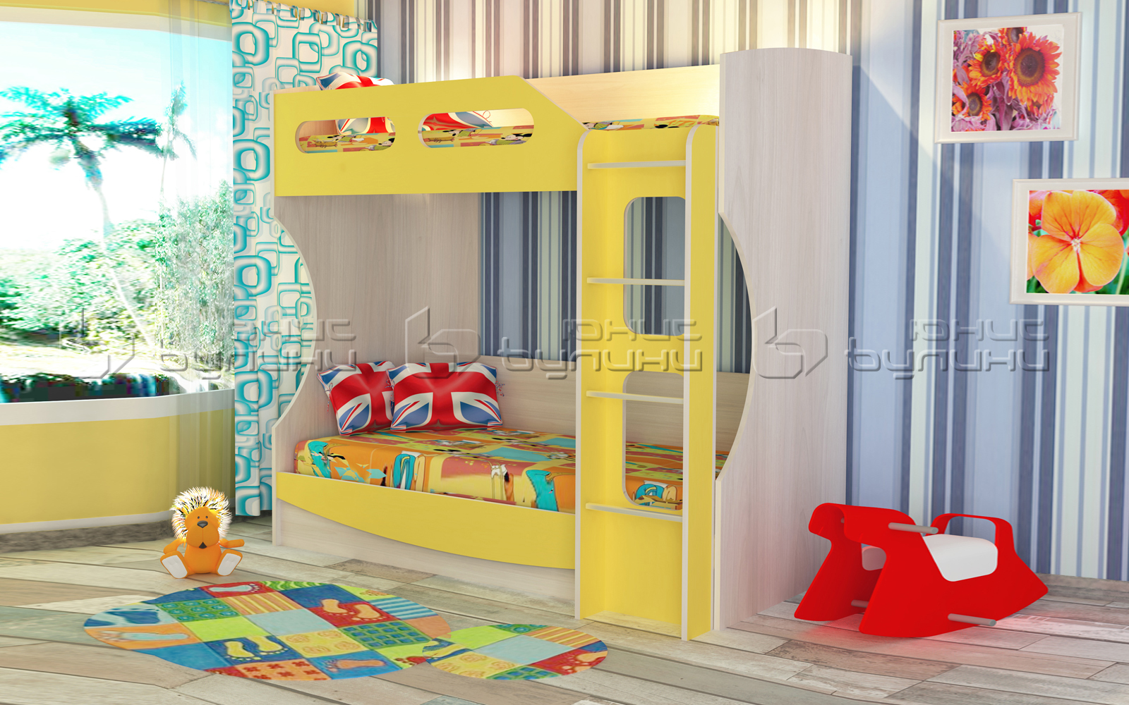 Двуетажното легло е не само функционално, но и стилно допълнение към всяка детска стая. Неговият модерен и изчистен дизайн лесно се вписва в различни интериорни стилове, като може да се комбинира с различни цветови схеми и мебели. Леглото е налично в различни цветове и финиши, което ви дава възможност да изберете най-подходящия вариант за вашия дом.