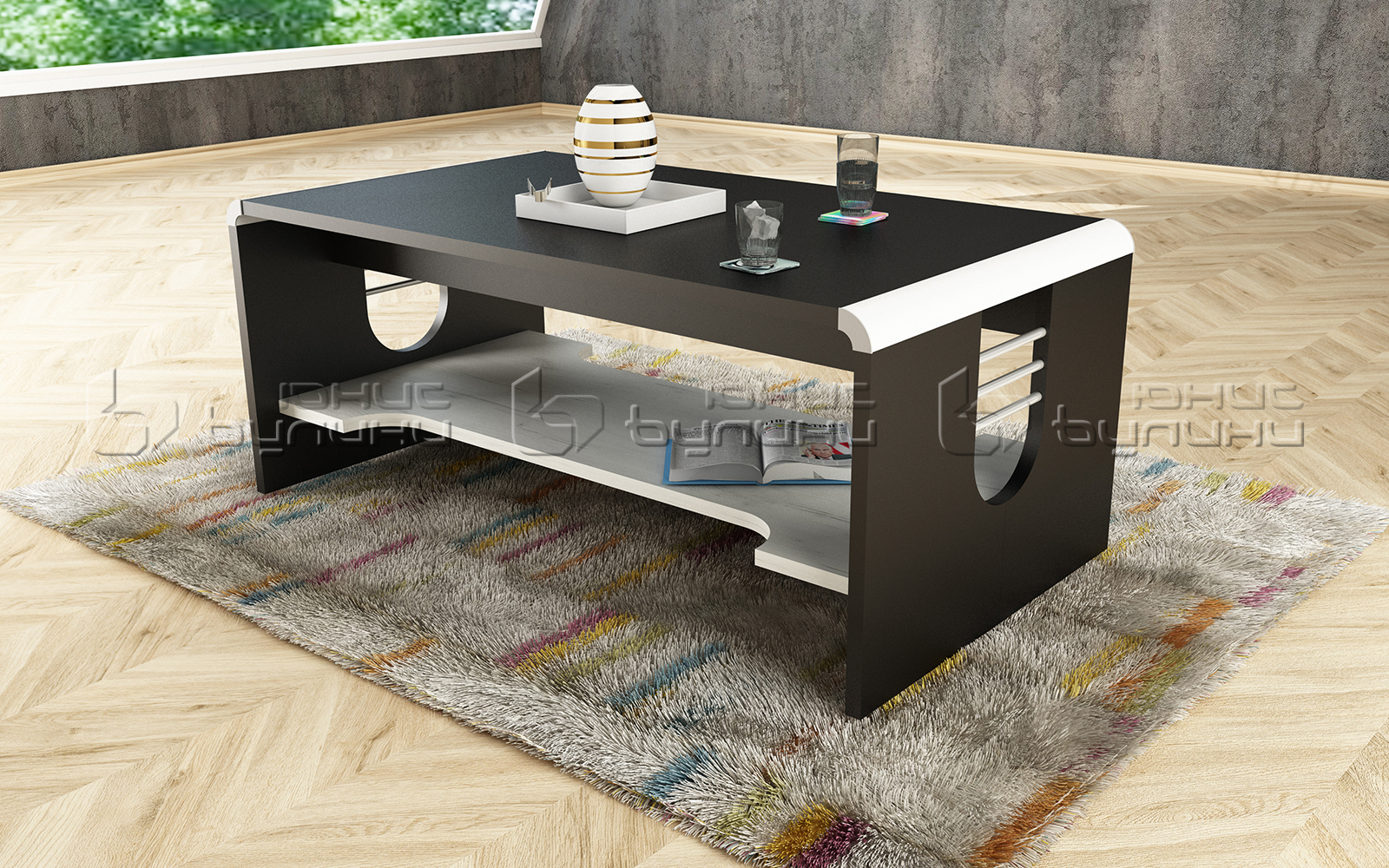 Тази маса е създадена, за да отговори на нуждите на съвременния потребител, който търси не само красива, но и практична мебел. С лице от черен декор и корпус във декор дъб крафт бял, маса Ира е съчетание на модерен и ретро дизайн, което позволява лесно да бъде интегрирана в различни интериорни стилове. Размери на масата: ширина 1100 мм / дълбочина 600 мм / височна 450 мм.