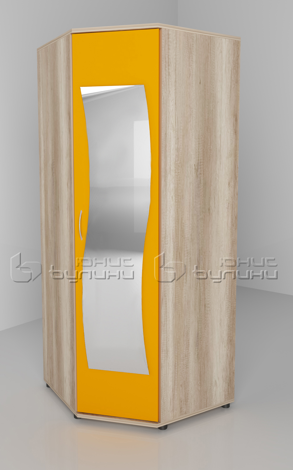 Ъгловият гардероб с размери 800x800 мм ширина, 505 мм дълбочина и 1960 мм височина е отличен за максимално оползотворяване на ъглите в стаята. Той предоставя допълнително пространство за съхранение, без да заема излишно място.