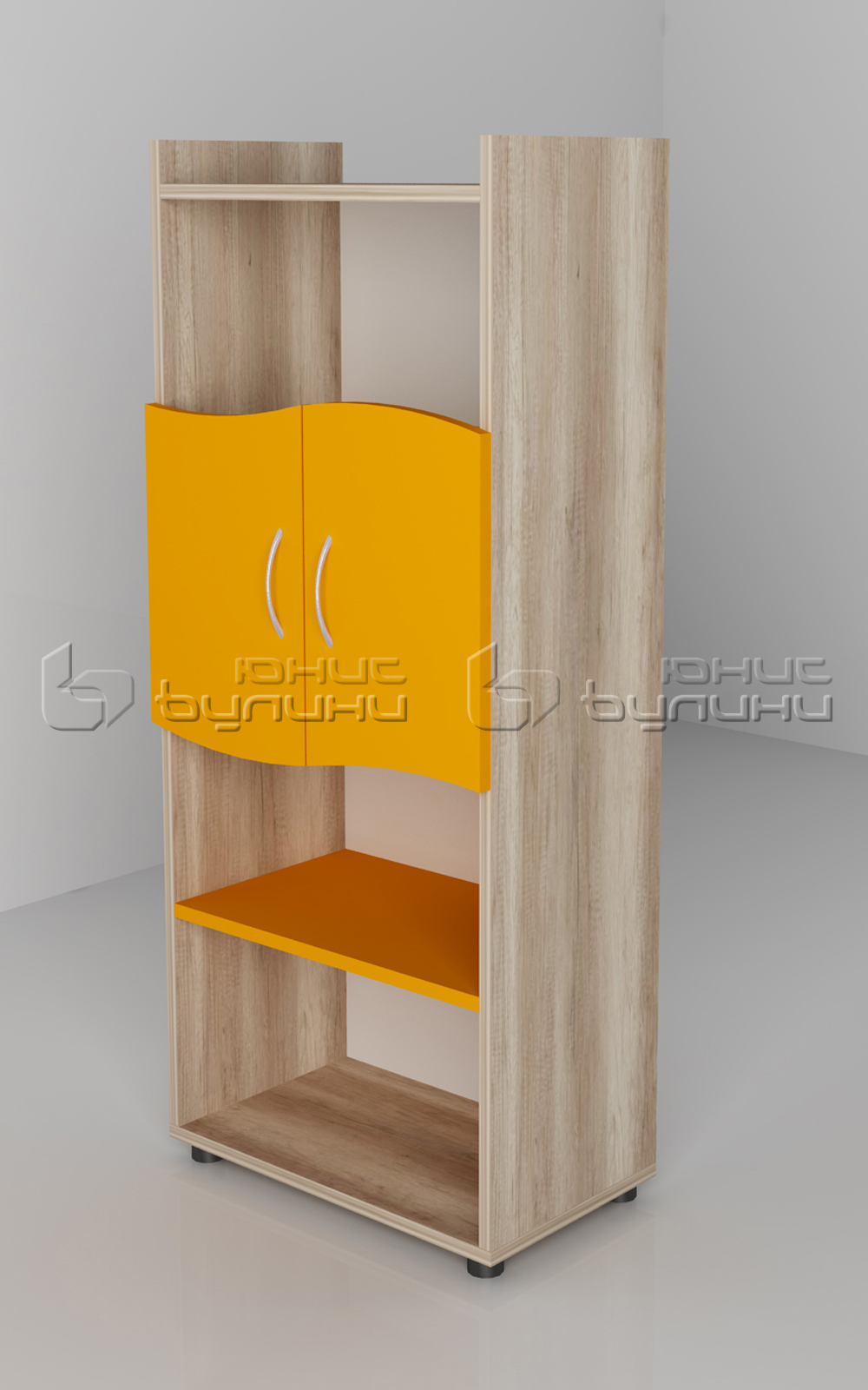 Етажерката с размери 600 мм ширина, 220 мм дълбочина и 485 мм височина е чудесна за съхранение на книги, играчки или декоративни предмети. Тя допълва останалите модули и придава завършен вид на стаята.