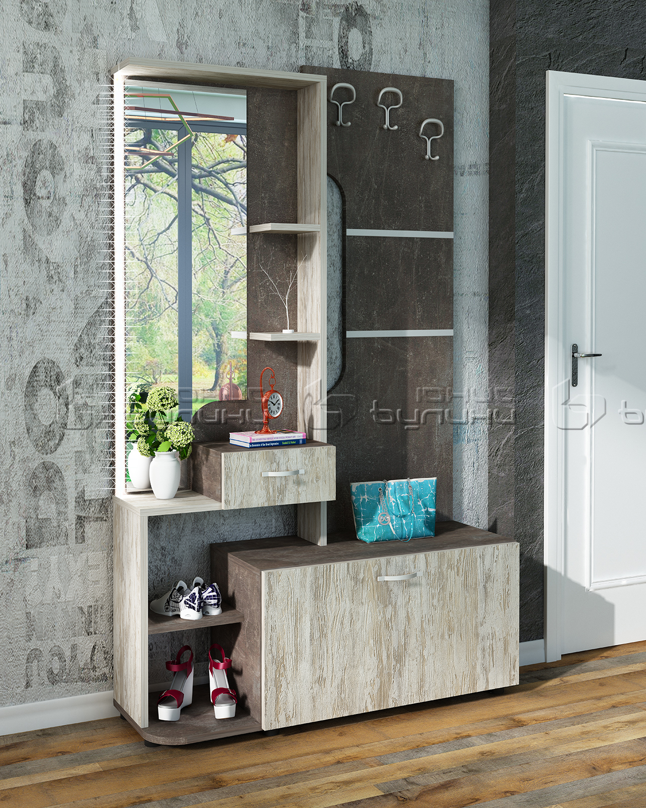 • Шкаф за обувки – практичен и просторен шкаф, който лесно побира няколко чифта обувки, спестявайки място и поддържайки подредбата във входното пространство.