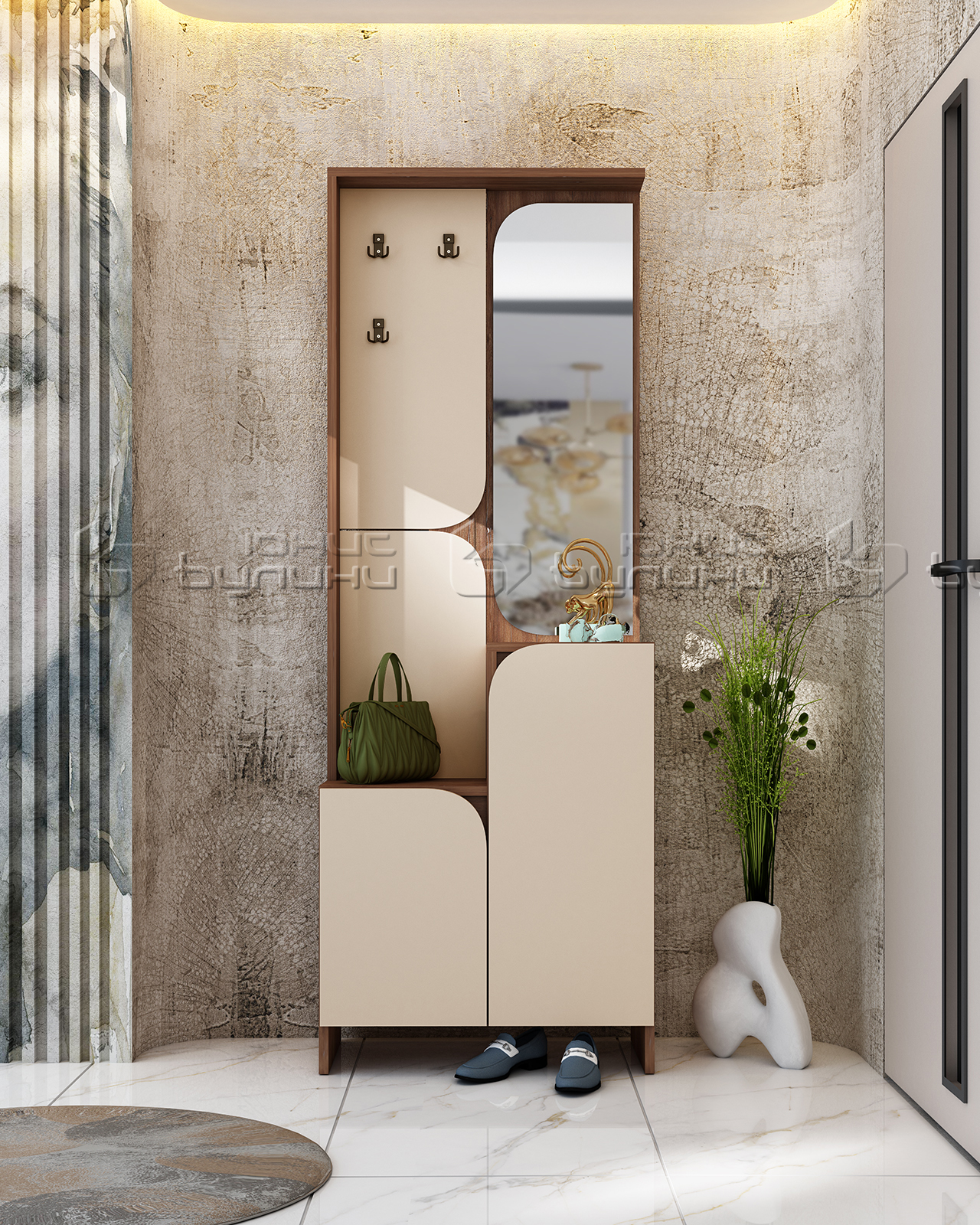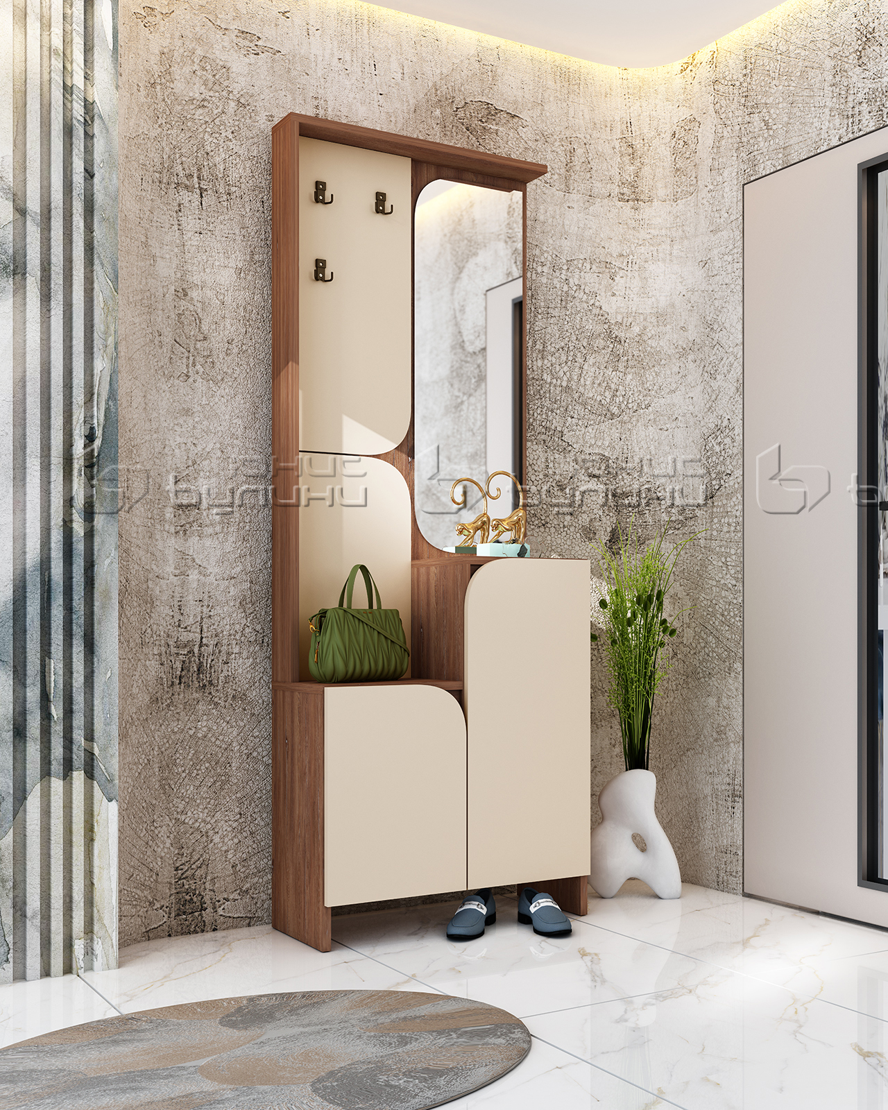Портманто Изи предлага перфектна комбинация от функционалност и стил. В него има достатъчно пространство за съхранение на Вашите връхни дрехи, обувки, чанти и други аксесоари. Със своите добре организирани отделения и рафтове, то ще ви помогне да поддържате ред във входното пространство и да осигурите комфорт при ежедневните си дейности.