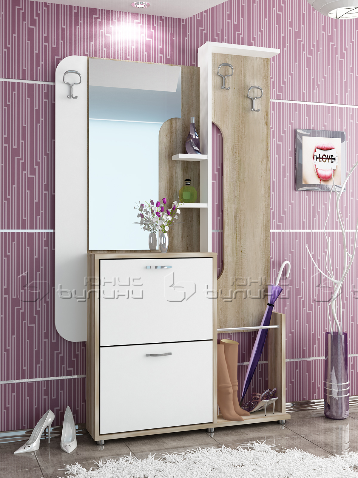 Портманто Мока е не само стилно, но и изключително функционално. В дясната част са разположени удобни закачалки, които са подходящи за съхранение на връхни дрехи, шапки и други аксесоари. Това улеснява организацията на дрехите и позволява лесен достъп до тях, което е особено полезно в забързаното ежедневие. В лявата част на портмантото има голямо огледало, което не само служи на практични цели, но и визуално разширява пространството в антрето. Под огледалото са разположени шкафове за обувки с падащи врати, които осигуряват удобство и допълнително място за съхранение. Тези шкафове позволяват обувките Ви да бъдат подредени и организирани, без да заемат прекалено много пространство. Със своите компактни размери – ширина от 1150 мм, дълбочина от 200 мм и височина от 1900 мм, портманто Мока е подходящо дори за по-малки помещения. Тази компактност го прави изключително удобно решение за антре, като осигурява достатъчно място за съхранение, без да заема много пространство.