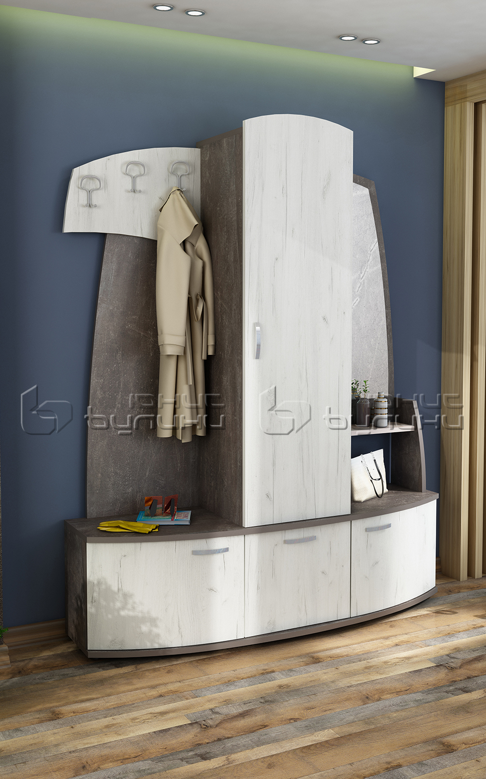 Портманто Пегас – Стилен избор за всеки модерен дом Портманто Пегас е изключителен избор за тези, които търсят стилно, функционално и компактно обзавеждане за своя коридор или антре. С неговия съвременен и привлекателен дизайн, това портманто е идеално решение за организиране и съхранение на вещи в малки или средно големи пространства. Основната му структура включва корпус в цвят: тъмен бетон и лице в цвят дъб крафт бял, създавайки уникален и хармоничен контраст, който допълва интериора на всеки дом. Портманто Пегас впечатлява с иновации и удобства, които правят ежедневието по-лесно.