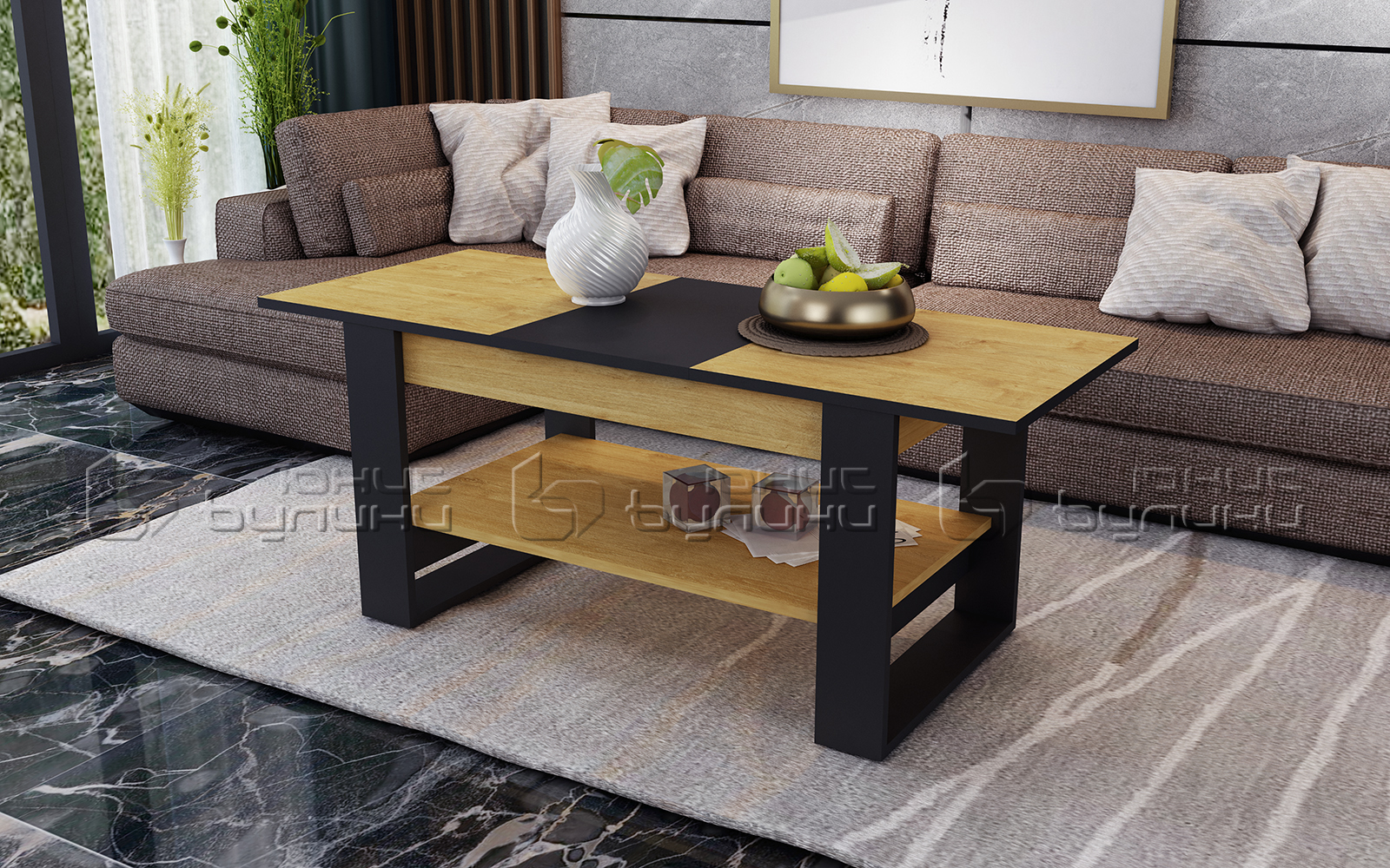 Масата Денвър се отличава с елегантен и изчистен дизайн, който добавя стил и класа на всяко помещение. Корпусът е в цвят златен дъб, което придава топлина и естественост на визията, а черната повърхност на лицето създава красив контраст и усещане за лукс. Комбинацията от тези два цвята – златен дъб и черно – е класически избор, който съчетава модерния стил с нотка на традиционност. Благодарение на тази цветова комбинация, маса Денвър лесно се вписва в различни интериорни стилове – от модернистични и минималистични до по-класически и рустикални. Изработена от висококачествено ПДЧ с дебелина 16 мм, масата е не само естетически привлекателна, но и много здрава. ПДЧ материалът е известен със своята устойчивост и издръжливост, като същевременно предлага перфектно съотношение спрямо цената си. Този материал също така е лесен за поддръжка и почистване, което е важно предимство в забързаното ежедневие. С минимална грижа, масата ще запази своя първоначален вид и ще продължи да краси вашия дом за години напред.