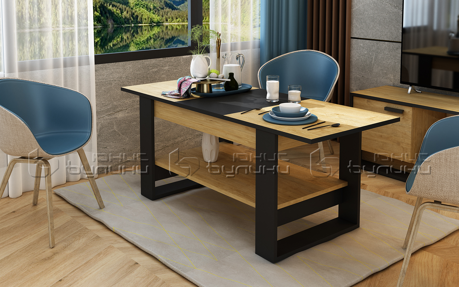 - Модерен и стилен външен вид – Комбинацията от златен дъб и черно е не само модерна, но и много адаптивна към различни интериори. Независимо дали обичате минимализма или предпочитате по-традиционни декори, масата Денвър ще се впише с лекота.