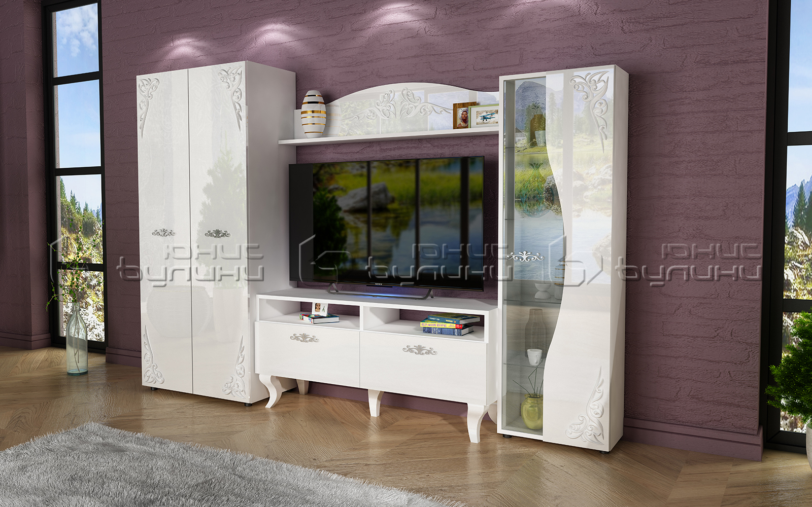 Мястото за телевизор е внимателно проектирано с ширина 1300 мм / дълбочина 395 мм / височина 880 мм, което позволява лесно поставяне на телевизор с голям екран, създавайки уютен и функционален телевизионен кът. Независимо дали разполагате с по-голям или по-малък телевизор, тази секция ще отговори на нуждите ви, като същевременно ще предложи допълнително място за съхранение на мултимедийни устройства и аксесоари.