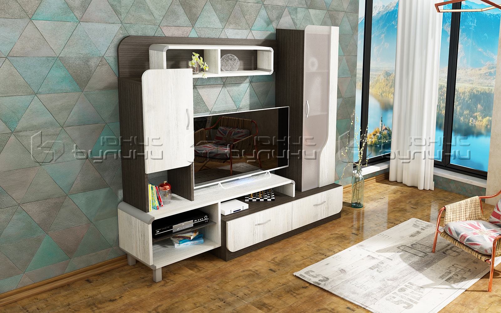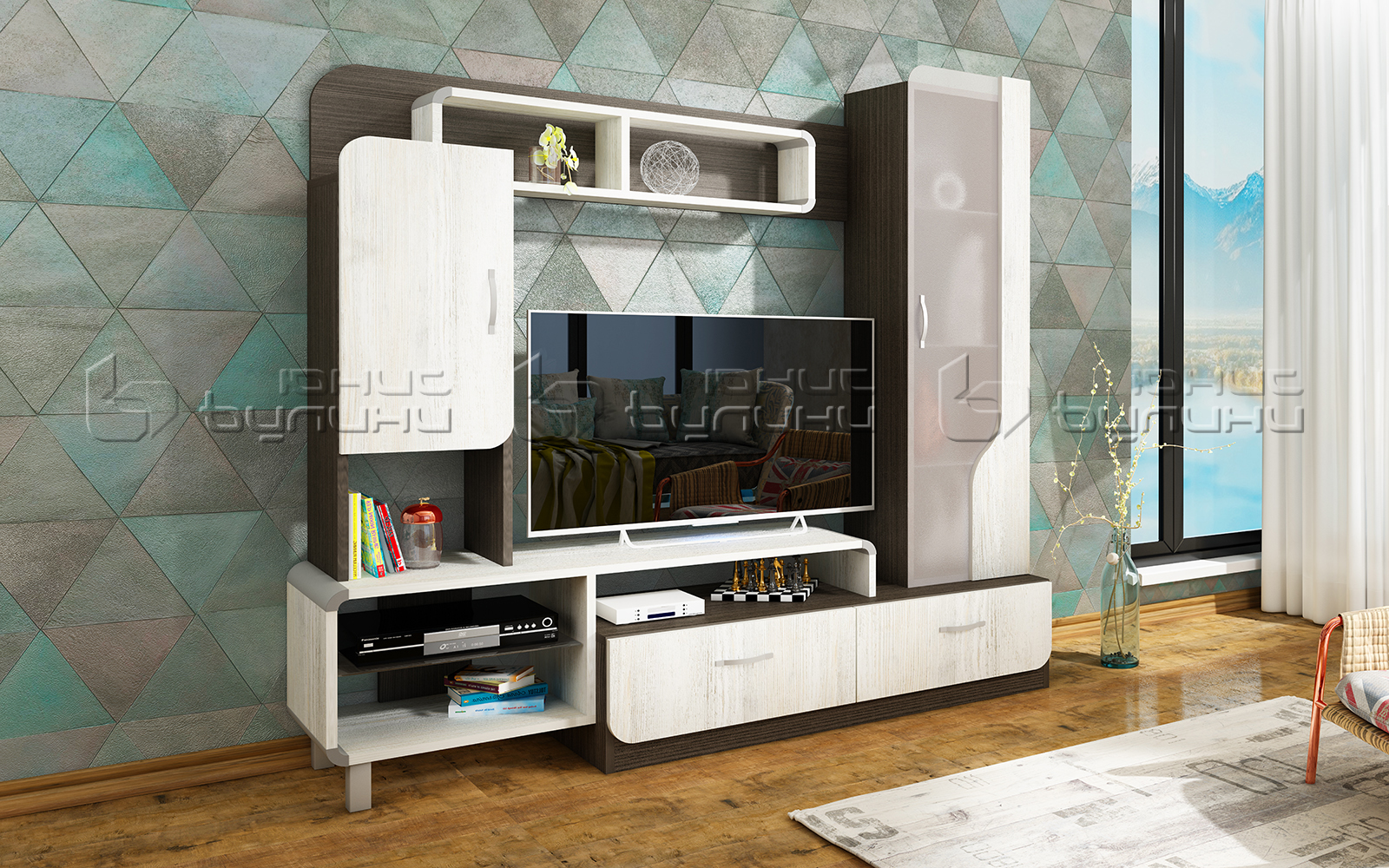 - Голямо пространство за телевизор: Широкият и дълбок отвор за телевизор предоставя достатъчно място за модерни устройства.