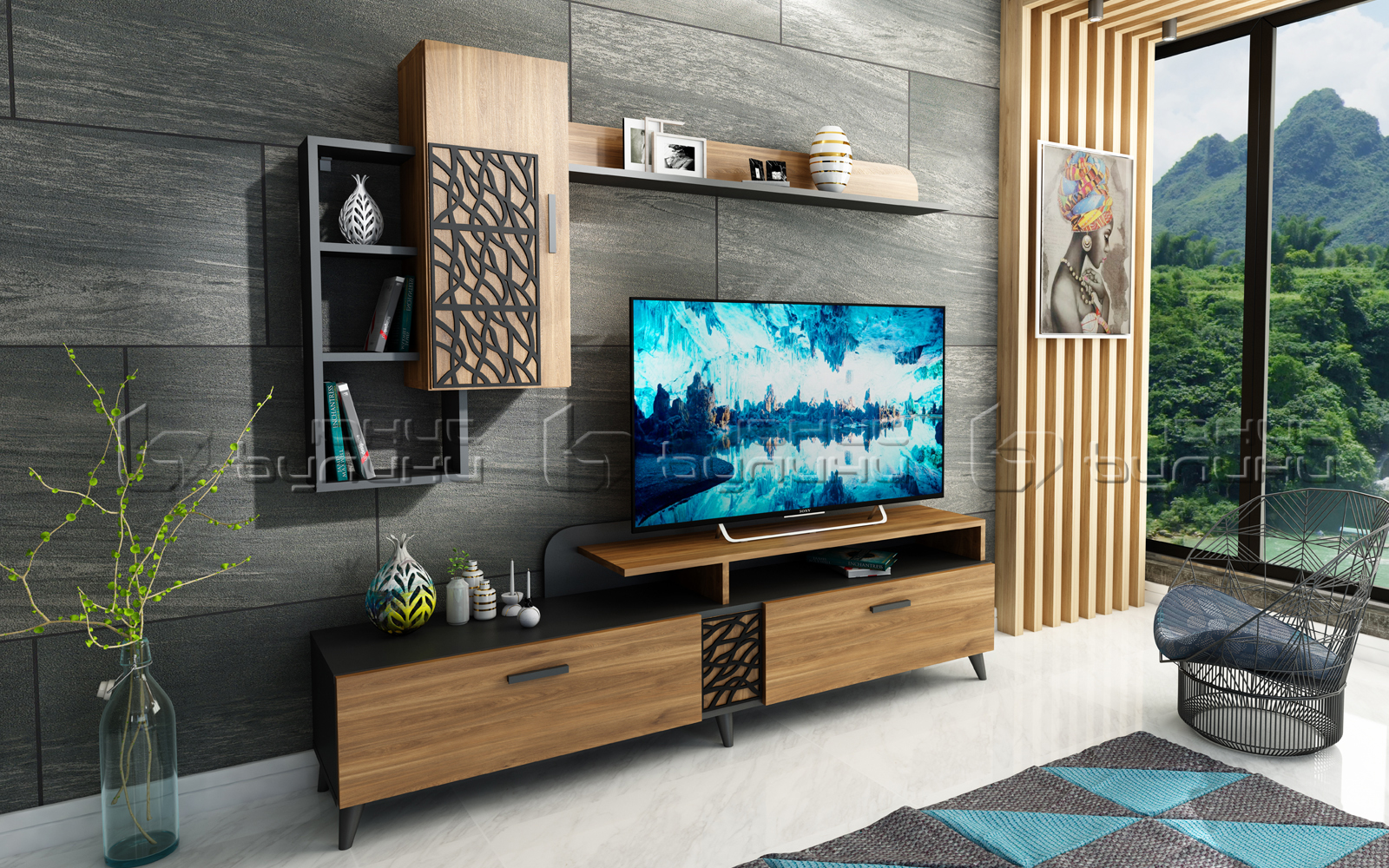 Тези размери позволяват удобно разположение на телевизор с голям екран, като същевременно остават достатъчно пространство за други устройства като кабелни приемници, игрови конзоли и др.