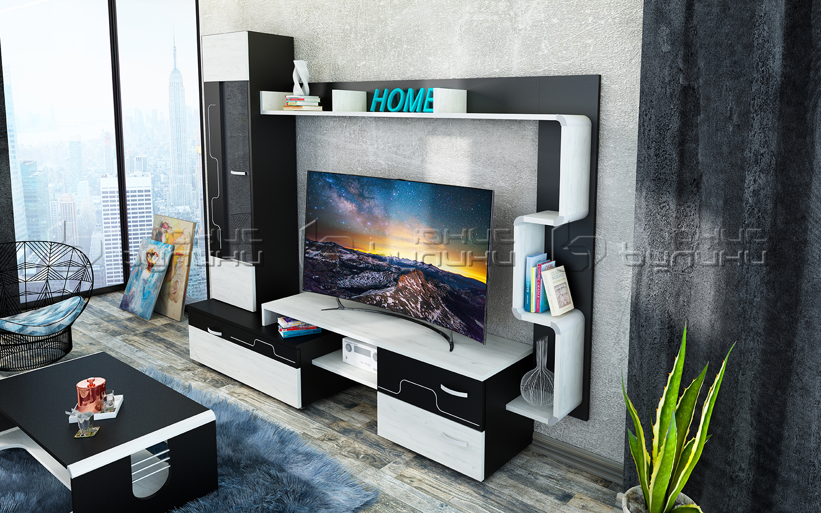 Секцията е проектирана с цел да предложи максимална функционалност и удобство. С обща ширина от 2200 мм, дълбочина 450 мм и височина 1800 мм, тя предоставя достатъчно пространство за съхранение на различни предмети – от книги и декоративни аксесоари до медийни устройства и документи. Мястото за телевизор е внимателно предвидено и има следните размери: ширина 1570 мм, дълбочина 385 мм и височина 940 мм. Това пространство е достатъчно голямо, за да побере телевизори с различни диагонали на екрана, без да създава усещане за претъпкване на секцията. Освен това, дизайнът на секцията осигурява удобно разположение на кабелите, което ще допринесе за чист и подреден вид на вашата всекидневна.