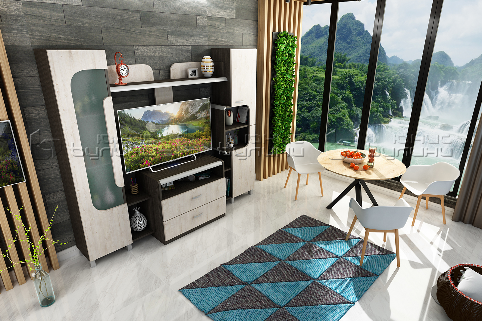 - Функционалност – с достатъчно пространство за съхранение, открити и затворени рафтове и удобно място за телевизор, секция Монако предлага всичко необходимо за една функционална всекидневна.