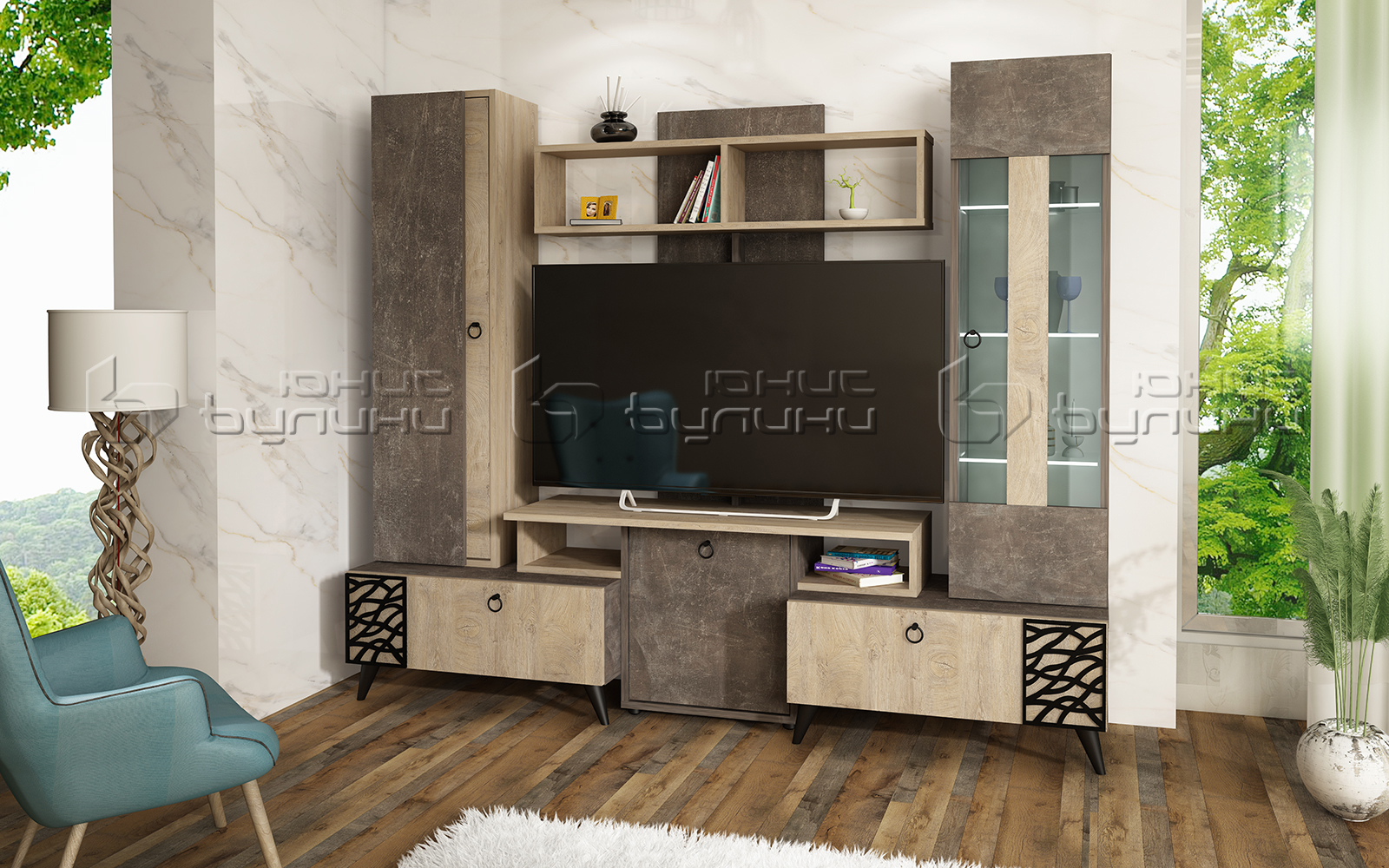 Секция Нола е създадена с мисъл за практичността и комфорта на съвременните потребители. Мястото за телевизор е с ширина 1300 мм, дълбочина 400 мм и височина 755 мм, което осигурява достатъчно пространство за поставяне на телевизор с голям диагонал. Това е важно предимство, особено за онези, които искат да се наслаждават на качествена картина и звук, без да правят компромиси с дизайна на интериора.