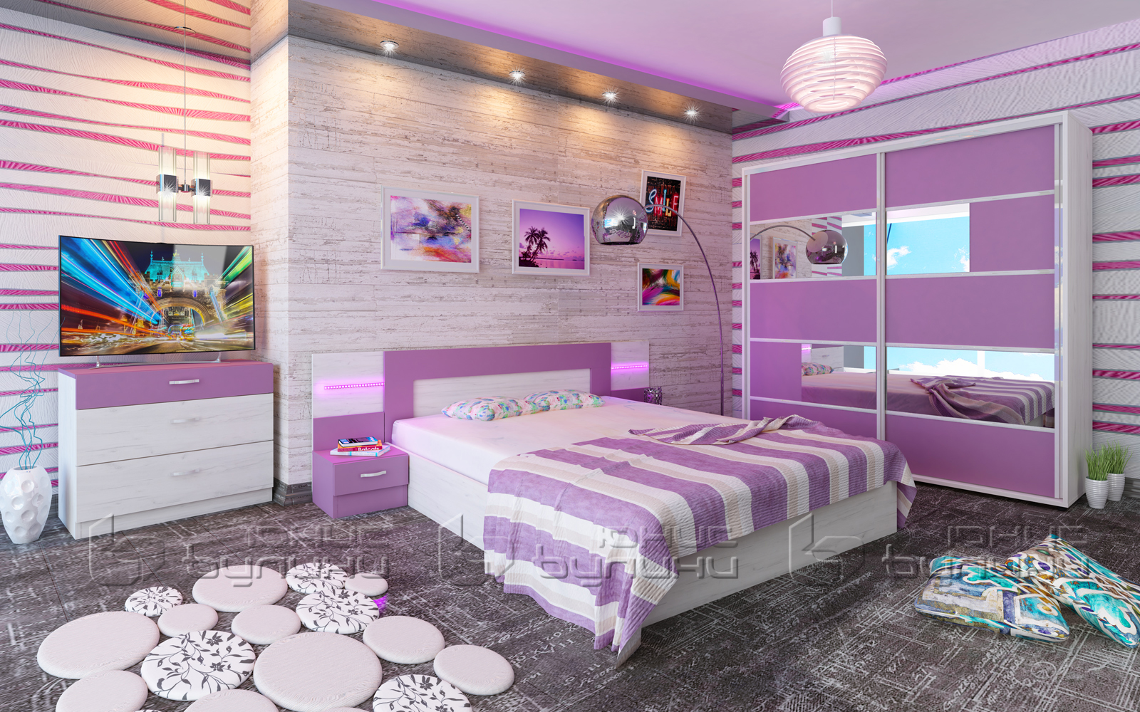 Една от най-впечатляващите функции на спален комплект Адел е вграденото RGB LED осветление с дистанционно управление. Това осветление не само добавя допълнителна атмосфера и уют в спалнята, но и предлага възможност за промяна на цвета на светлината според вашите предпочитания. Така, лесно можете да създадете подходяща атмосфера за релакс или за романтична вечер. С възможността за смяна на цвета на осветлението, можете да персонализирате спалнята си според настроението или дизайна на интериора. RGB осветлението е не само стилен елемент, но и практично решение за осветление на стаята през нощта, без да се налага да използвате основните светлини.