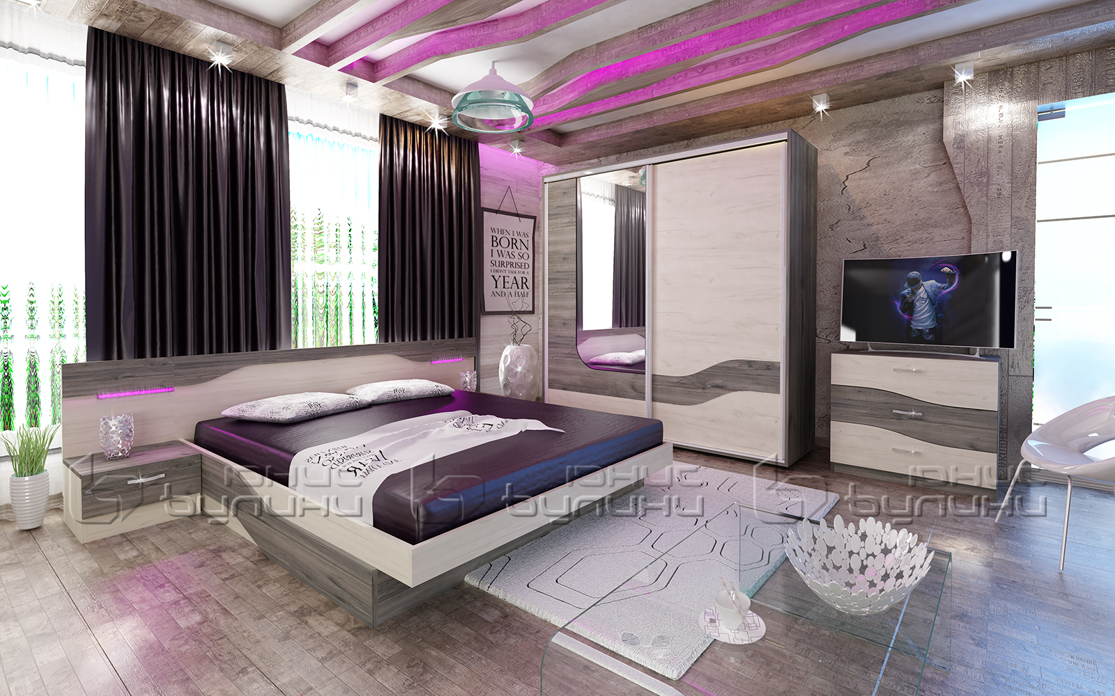 - LED осветление: RGB LED осветлението с дистанционно управление позволява персонализиране на атмосферата във вашата спалня.