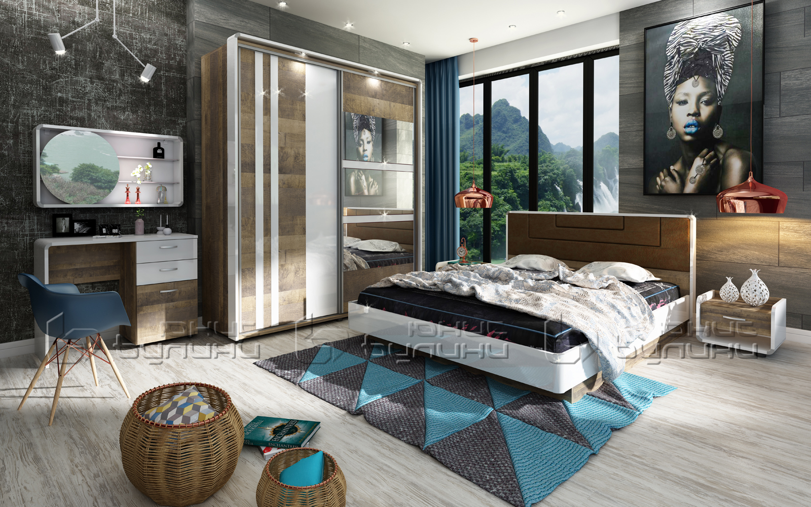 - Достатъчно място за съхранение – просторен гардероб и функционална тоалетка за оптимална организация на пространството.