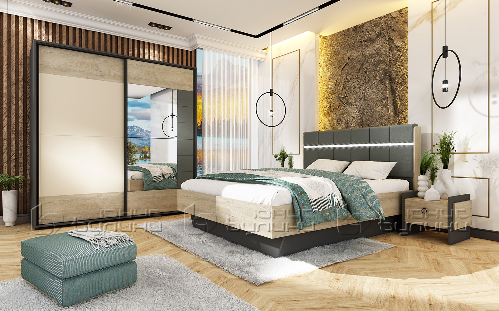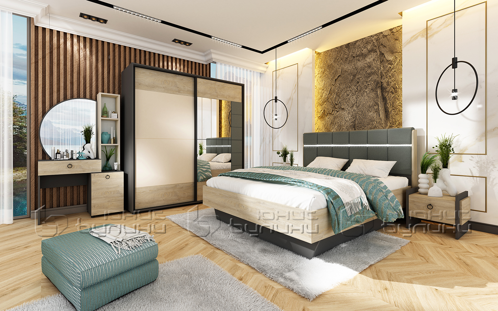 Спален комплект Комфорт включва три основни части: спалня, гардероб и тоалетка. Всеки компонент е внимателно проектиран, за да предложи максимален комфорт и практичност, което прави комплекта идеален за всяка съвременна спалня.