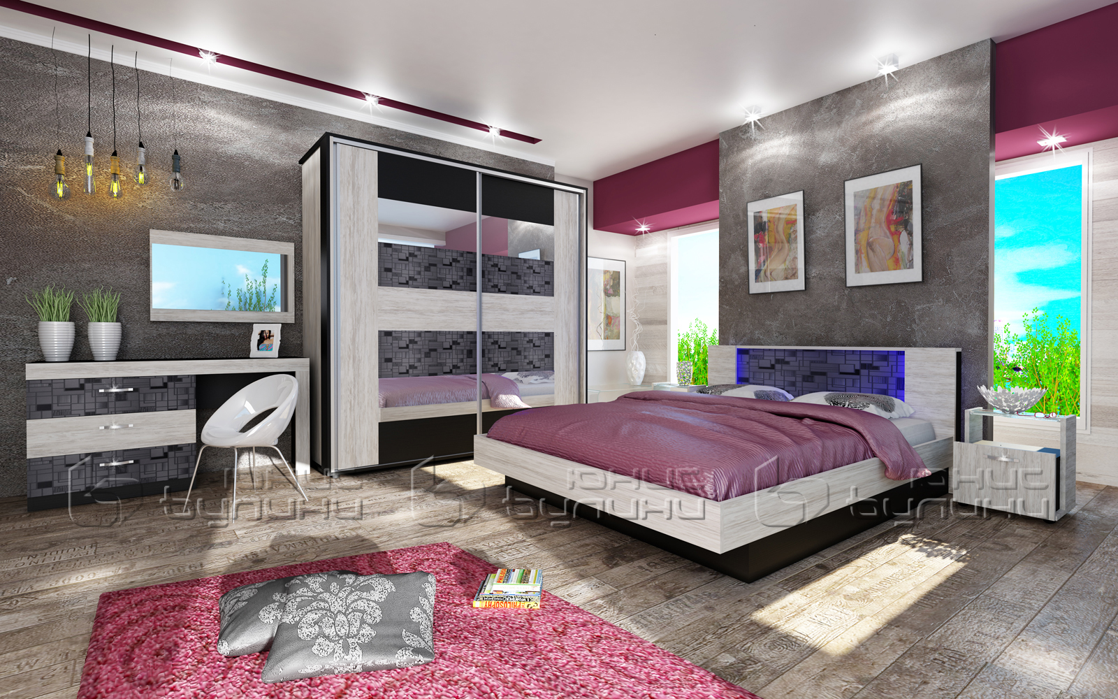 Една от най-впечатляващите характеристики на спален комплект Комо е наличието на RGB LED осветление с дистанционно управление. Това иновативно решение ви позволява да променяте цвета на светлината според вашето настроение или нужди. Можете да избирате между различни нюанси на светлината, което създава уникална атмосфера във вашата спалня.