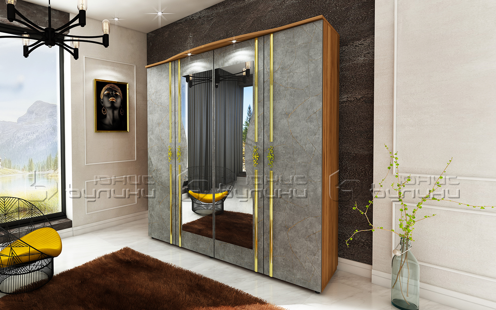 Гардеробът, включен в спален комплект Оскар, е не само стилен, но и изключително функционален. С ширина от 1700 мм, дълбочина 650 мм и височина 2000 мм, той предлага достатъчно място за съхранение на всичките ви дрехи, обувки и аксесоари. Отваряемите врати на гардероба са снабдени с механизъм за плавно затваряне, което осигурява безшумна и гладка работа, предпазвайки вратите от износване и удължавайки техния живот. Една от уникалните характеристики на този гардероб е козирката с LED осветление, което добавя допълнителна светлина и улеснява организацията на вашите вещи, дори в най-тъмните кътчета на гардероба. Това иновативно осветление също така допринася за модерния вид на гардероба, като го превръща в елегантен акцент в спалнята.