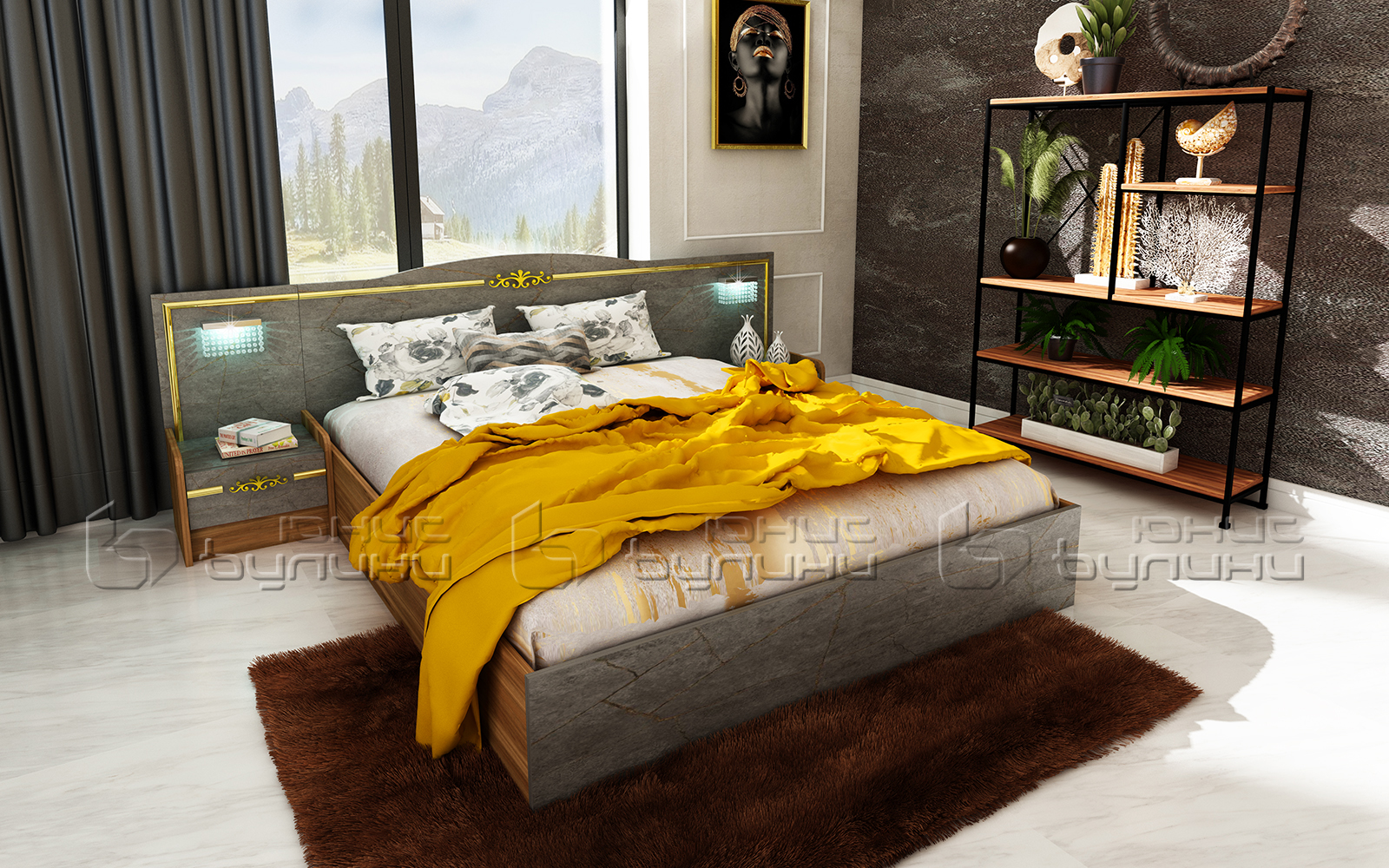 Основният елемент в спален комплект Оскар е спалнята, която се отличава със своите впечатляващи размери и стилен дизайн. С ширина от 2525 мм, дължина 2045 мм и височина 870 мм, тази спалня предлага достатъчно пространство за комфортен сън и релакс. Специално проектирана да поддържа матрак с размери 1600 мм/2000 мм, тя гарантира оптимална подкрепа и уют през цялата нощ. Спалнята Оскар се отличава с иновативни LED лампи, декорирани с кристали и златна лайстна, които добавят изтънченост и изисканост към цялостния дизайн. Със "светлината на хиляди звезди" -LED лампите с кристални отблясъци, създават магическа атмосфера, напомняща за топлите и загадъчни арабски нощи. Това осветление не само придава на спалнята луксозен вид, но и създава уютна атмосфера, подходяща за релакс след дълъг ден.